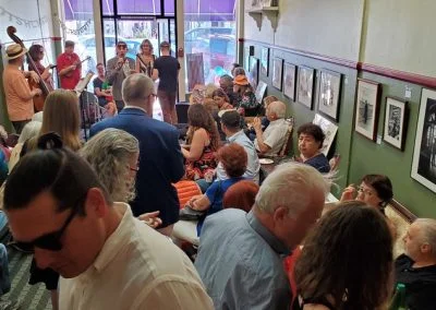 The special inaugural event of Yiddishland California with a klezmer concert by Elizabeth Schwartz, Yale Strom, and Gunnar Biggs. We had a ribbon cutting (a building bris, if you will) and hung a mezuzah (a threshold teffilin, as it were).