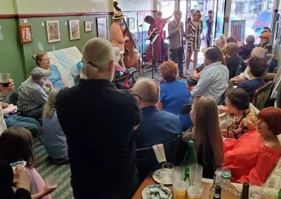 We enjoyed a Simche celebrating the freilach Festival of Light. Our special performers, Eva Beim and Bracha Crayk, brought unique interpretations of our beloved Chanukkah songs in Hebrew, Yiddish, English and Ladino. It was a heimish evening filled with music, humor, and Chanukkah rituals.