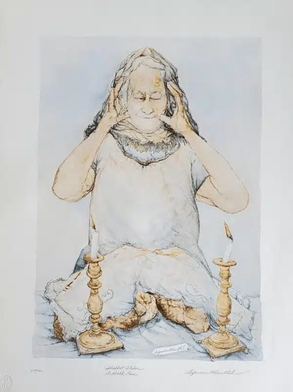 The woman featured here is believed to be Seymour’s mother-in-law, preparing to welcome the Sabbath. Seymour always cherished the day of rest, and loved to watch his family partake in it’s observance. Those same candlestick holders remained with Seymour for the rest of his life.