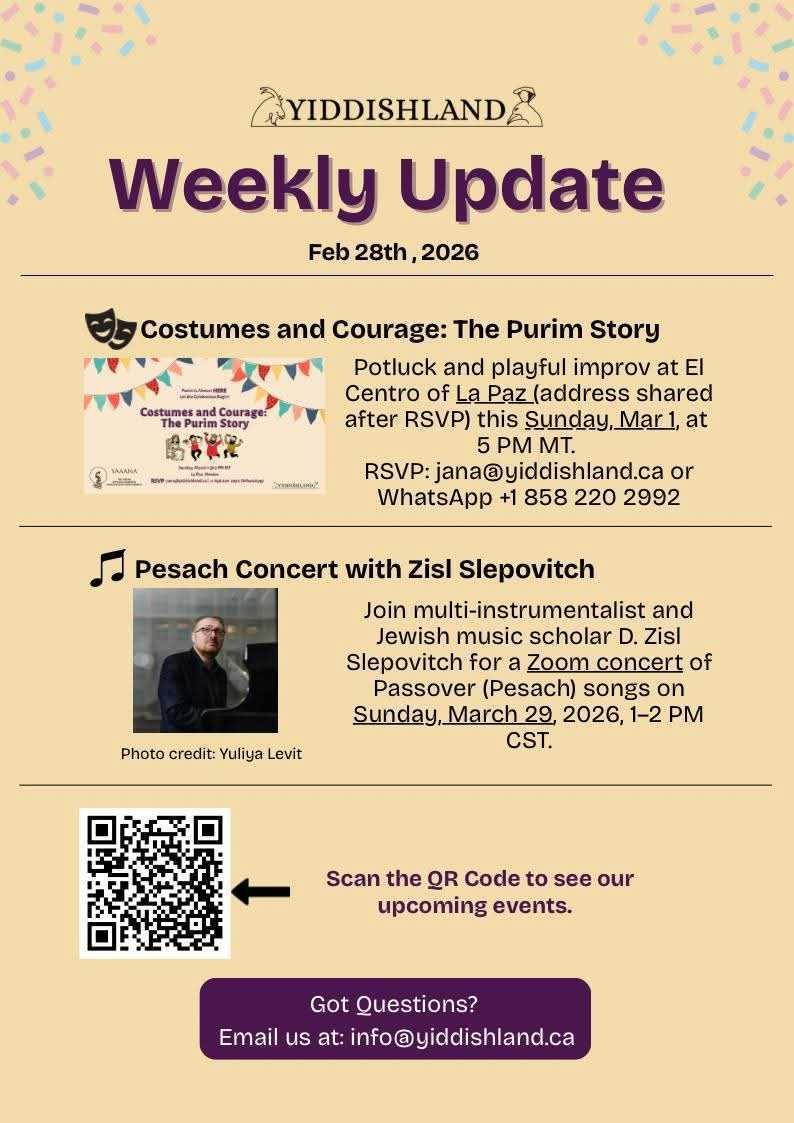 Subscribe to the Online Newsletter from Yiddishland California and never miss an update! Our newsletter is the best way to stay informed about upcoming events, cultural programs, Yiddish classes, and community highlights. Each edition brings you fresh stories, inspiring articles, and special opportunities to participate in our vibrant Yiddishland community.